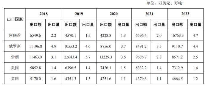 表2 2018—2022年印度茶叶前五大出口国情况
