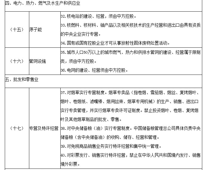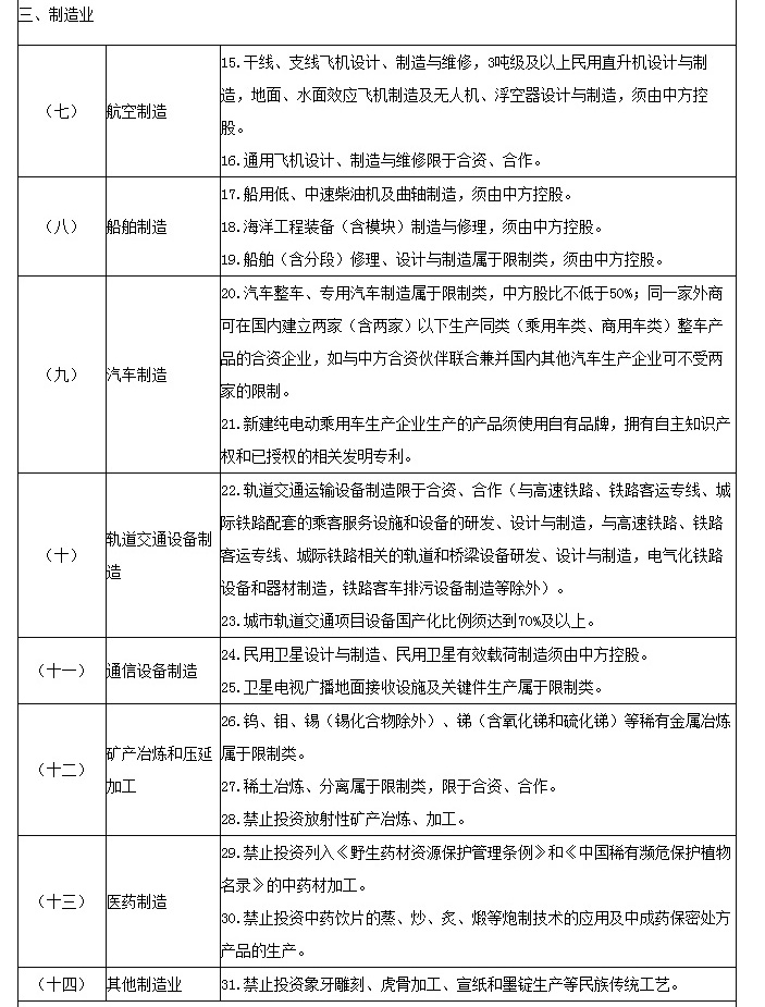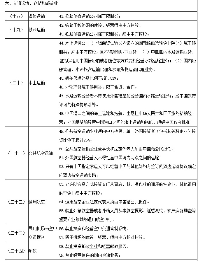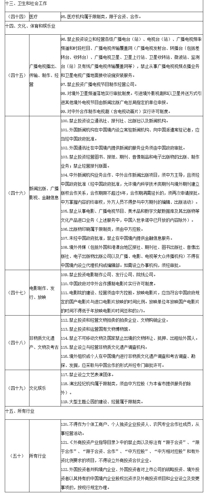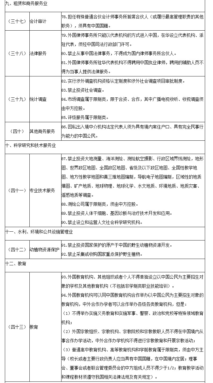 自由贸易试验区外商投资准入特别管理措施(负面清单)