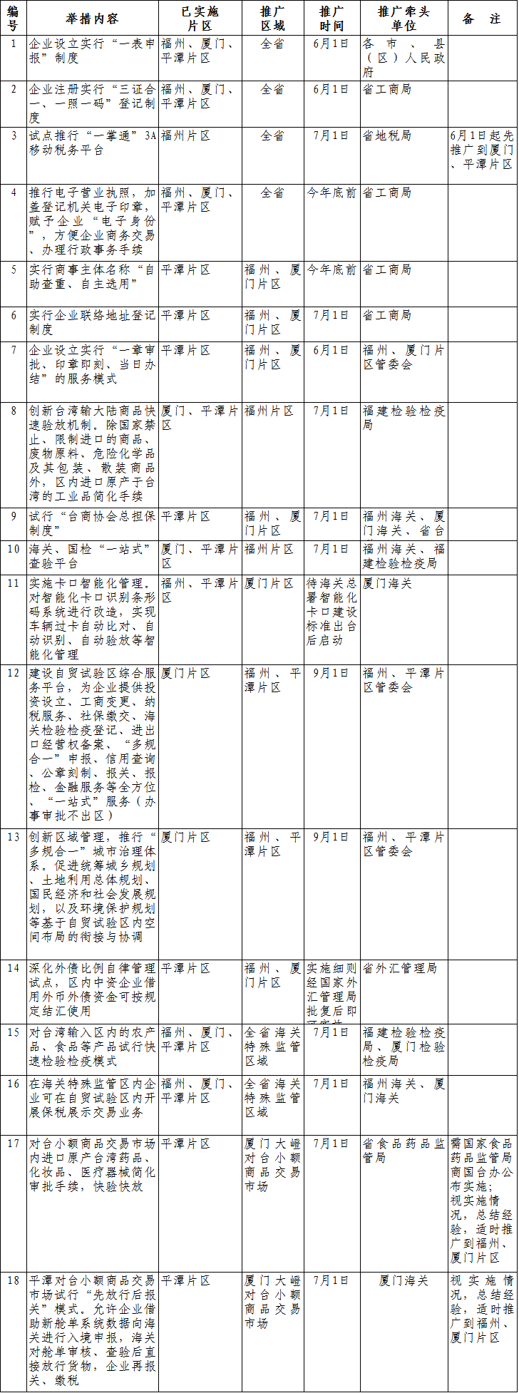 1.对台湾输入区内的农产品、食品等产品试行快速检验检疫模式;