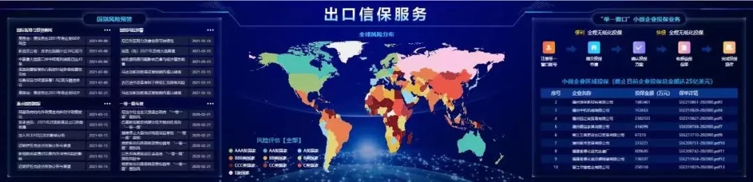 “单一窗口+出口信保”,提升投保便利度,有效帮助企业降低风险,由国家口岸办、中国出口信用保险公司联合在全国复制推广,2020年帮助近4000家企业申领保单,承保金额超26亿元。