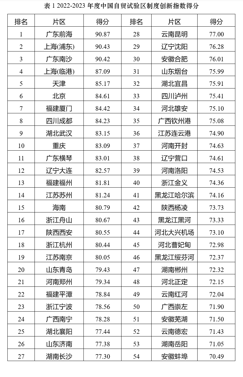 2022-2023年度中国自由贸易试验区制度创新指数发布