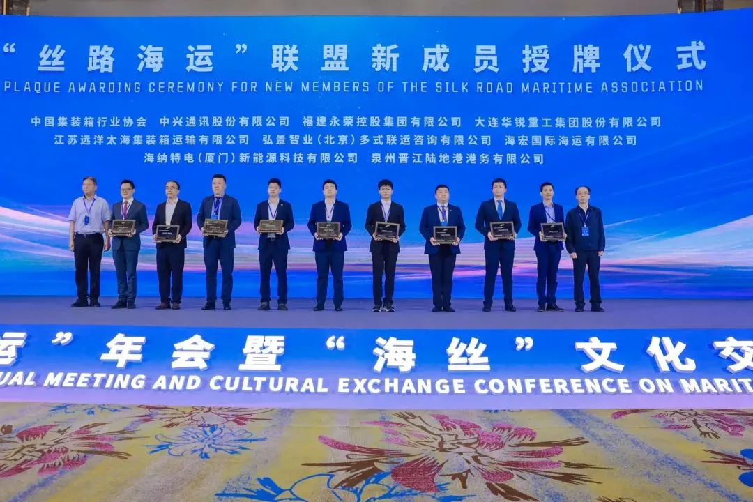 本次年会还举行了“丝路海运”联盟新成员授牌仪式,中国集装箱行业协会、海纳特电(厦门)新能源科技有限公司等9家涉及航运、新能源、高科技、港航智囊的企业正式加入“丝路海运”联盟。