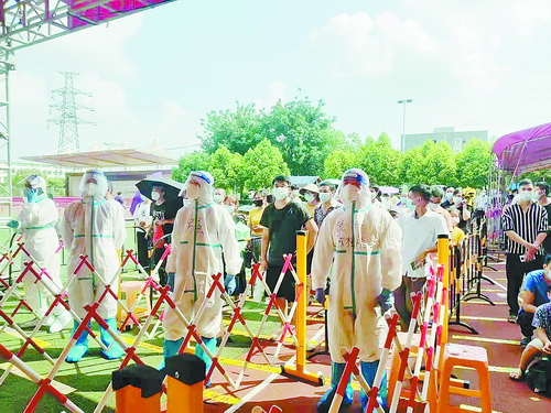 厦门自贸片区志愿者服务队赴高殿社区协助做好核酸检测等工作。