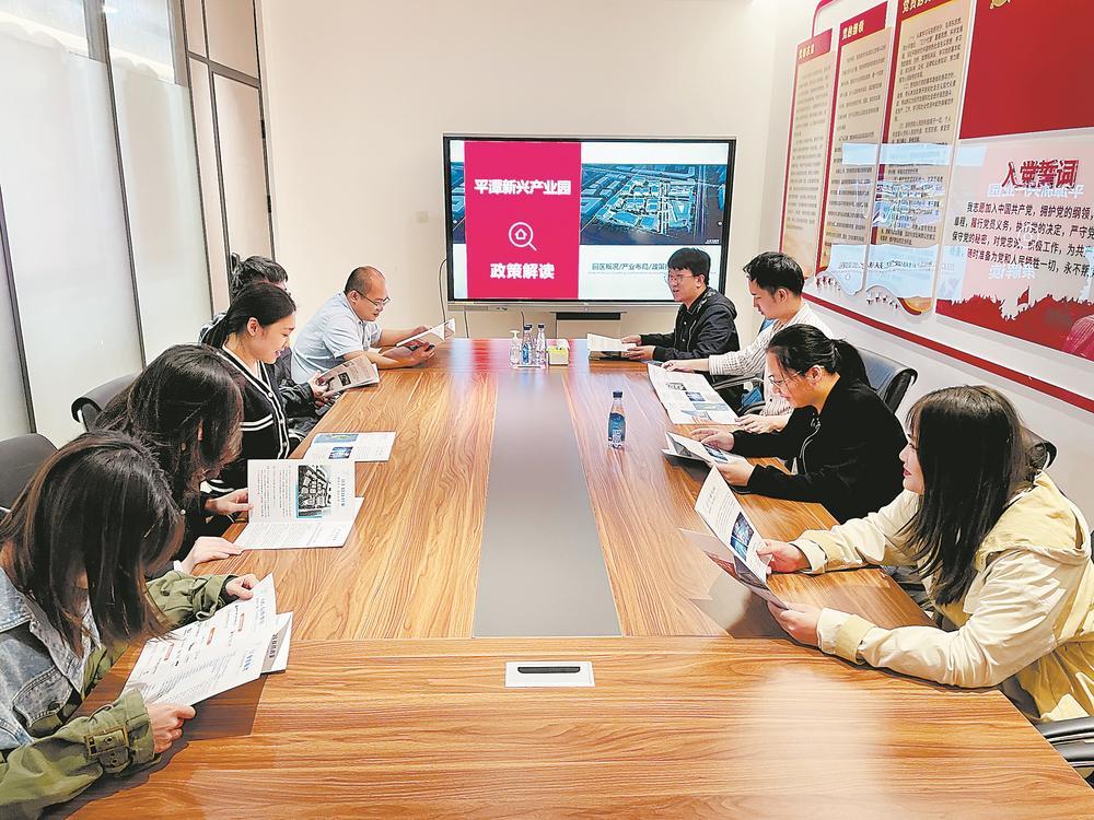 平潭综合实验区经济发展局工作人员对新兴产业园入驻企业开展政策宣传。