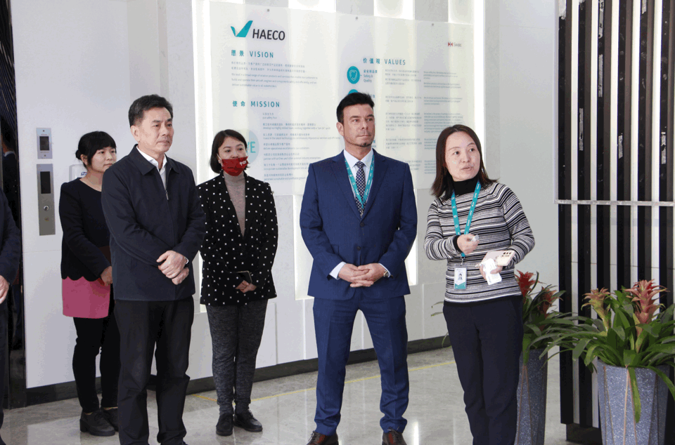 在厦门太古发动机服务有限公司,何东宁一行听取相关负责人对公司发展历程、业务范围的介绍,并走进维修、测试车间,实地察看发动机、零部件等维修情况。