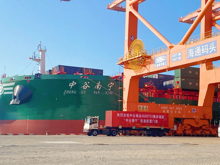 “中谷南宁”轮投入运营,刷新厦门港内贸最大单船吨位。厦门港口管理局供图