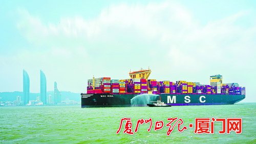 摘要:我国自主研制的全球最大集装箱船“地中海伊琳娜”(MSC IRINA)轮4月8日首航厦门港,刷新挂靠厦门港超大型船舶的纪录。进港时,拖轮出动,以“过水门”最高礼遇迎接新晋“船王”的到来。