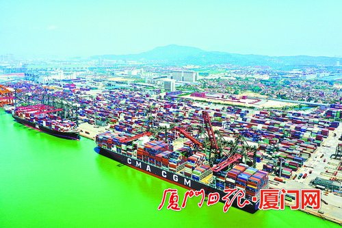 “立足厦门自贸片区,我们不仅能够积极融入产业发展生态圈,还能把握‘一带一路’建设机遇,走向更广阔的市场。”吴朝阳说,早在2017年,远海码头就有20万吨级的船舶停靠,一举刷新当时码头靠泊最大集装箱船的纪录。目前,20万吨级集装箱船码头停靠已经是常态。这背后,离不开厦门口岸率先通过“单一窗口”实现100%申报的政策推动。各方申报手续简化,减少费用,降低成本,缩短了通关时间,码头自然而然迎来更多利好。