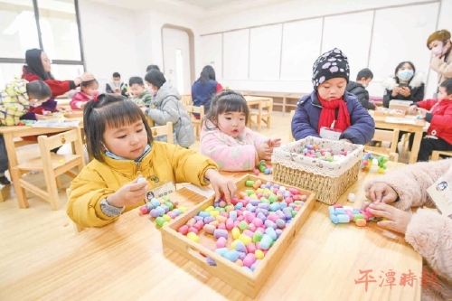 平潭扩大投资领域对外开放,立足对台定位,引进台资独资的学前教育机构。图为实验区首所台资双语幼儿园内,幼儿在上课。