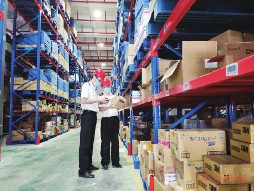 平潭海关推出一系列自贸创新监管举措,确保通关模式高效运转。图为工作人员在检查跨境电商商品。