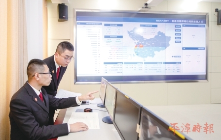 “委托公证+政府询价+异地处置”财产执行云处置模式入选“2019—2020中国自由贸易试验区制度创新十佳案例”。图为平潭法院工作人员在“人民法院执行指挥管理平台”上协调委托事项。