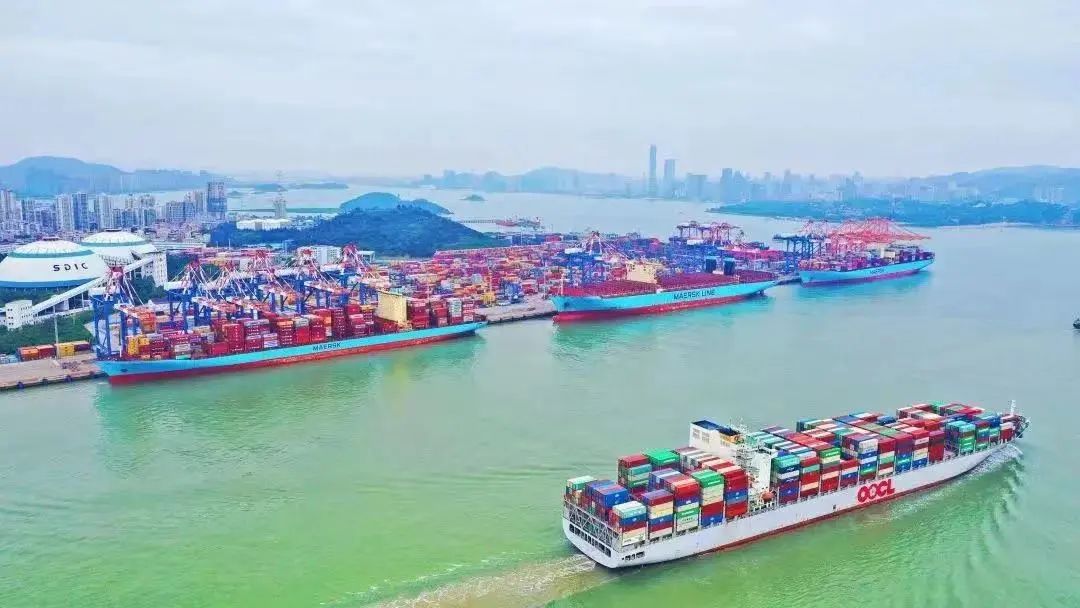 今年4月,嵩屿码头首次实现三艘15万吨级以上超大型集装箱船舶并靠作业。(图:活力厦门港)
