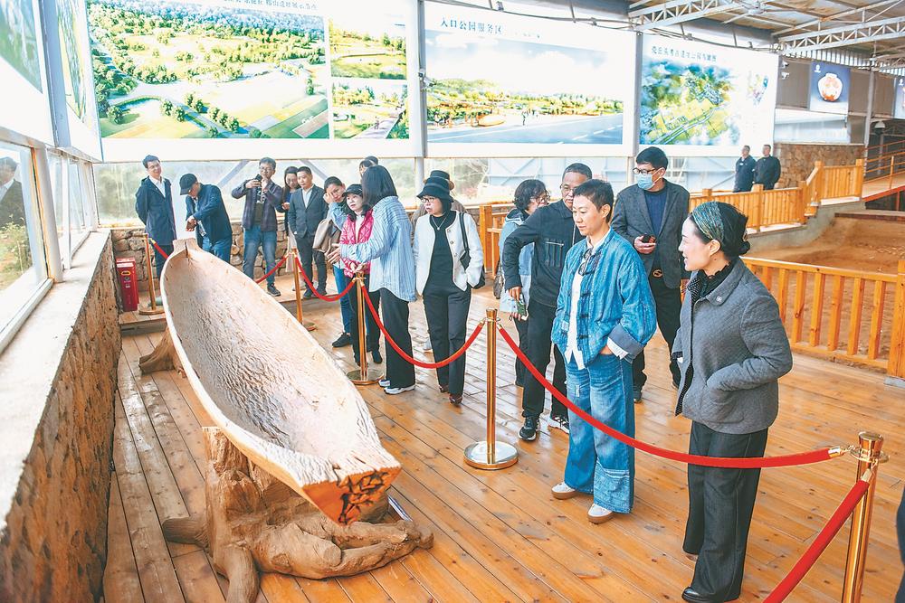 在平潭国际南岛语族考古研究基地,停放着一艘由巴布亚新几内亚依里安岛原住民使用的独木舟。 陈澜清 摄