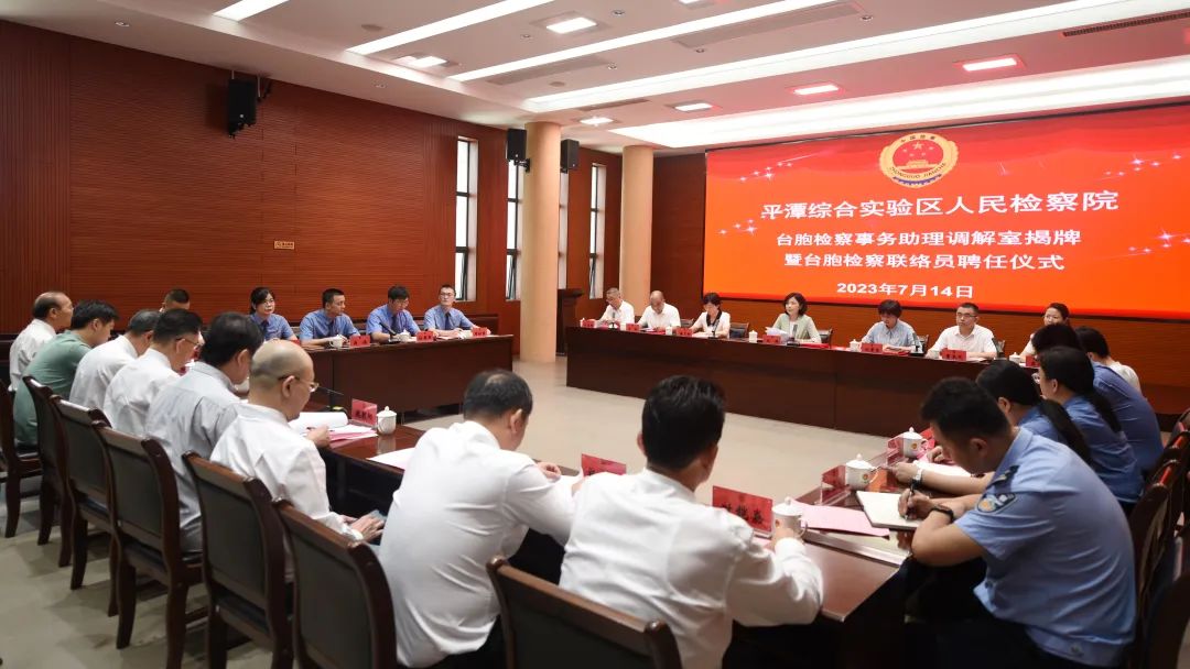 为深入贯彻落实《中共中央、国务院关于支持福建省探索海峡两岸融合发展新路 建设两岸融合发展示范区的意见》,助力两岸融合发展,7月14日,平潭综合实验区检察院举行台胞检察事务助理调解室揭牌暨台胞检察联络员聘任仪式。15名台胞被聘任为该院第二届台胞检察联络员。