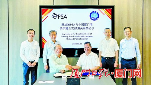 8月1日,厦门港与新加坡PSA国际港务集团签订合作协议,正式与新加坡港缔结友好港关系。厦门港口管理局局长夏长文、新加坡PSA国际港务集团总裁陈聪敏等出席签约仪式。截至目前,厦门港国际友好港数量已达到17个。