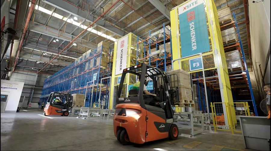 象屿综保区电动叉车和绿色全自动仓库。厦门市生态环境局供图