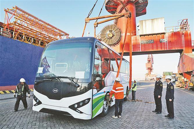 厦门市今年首批锂电池新能源客车乘散货船出海