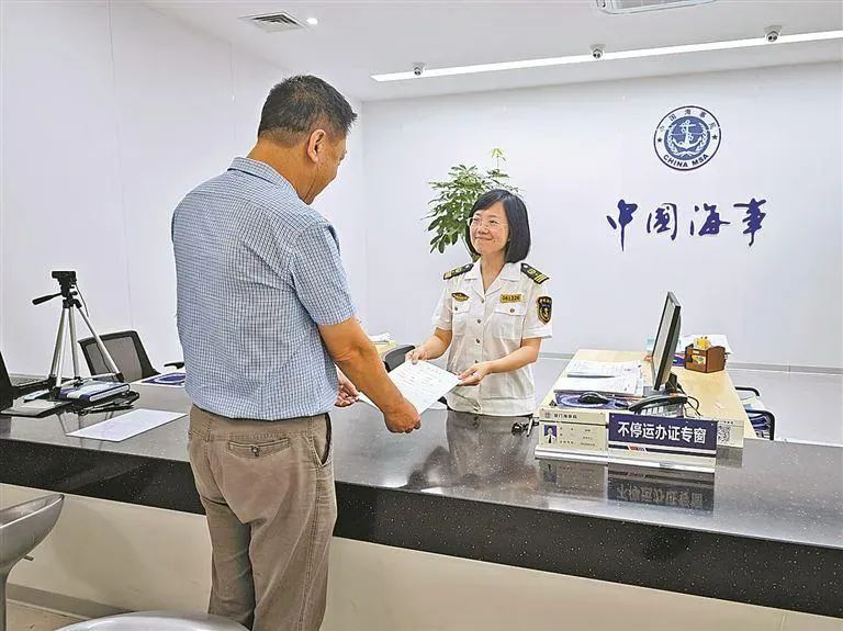 企业负责人通过“不停运办证”专窗办理船只转籍手续。(厦门海事局 供图)