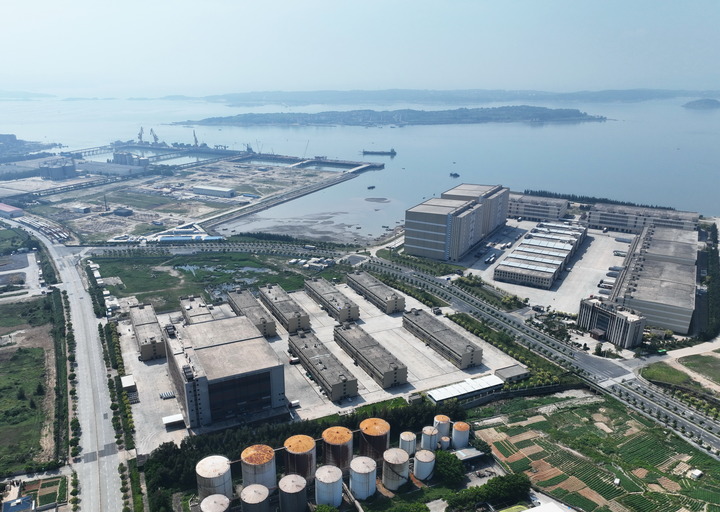 福建丰大冷链物流基地和远处的福州港松下港区元洪码头(林善传 摄)